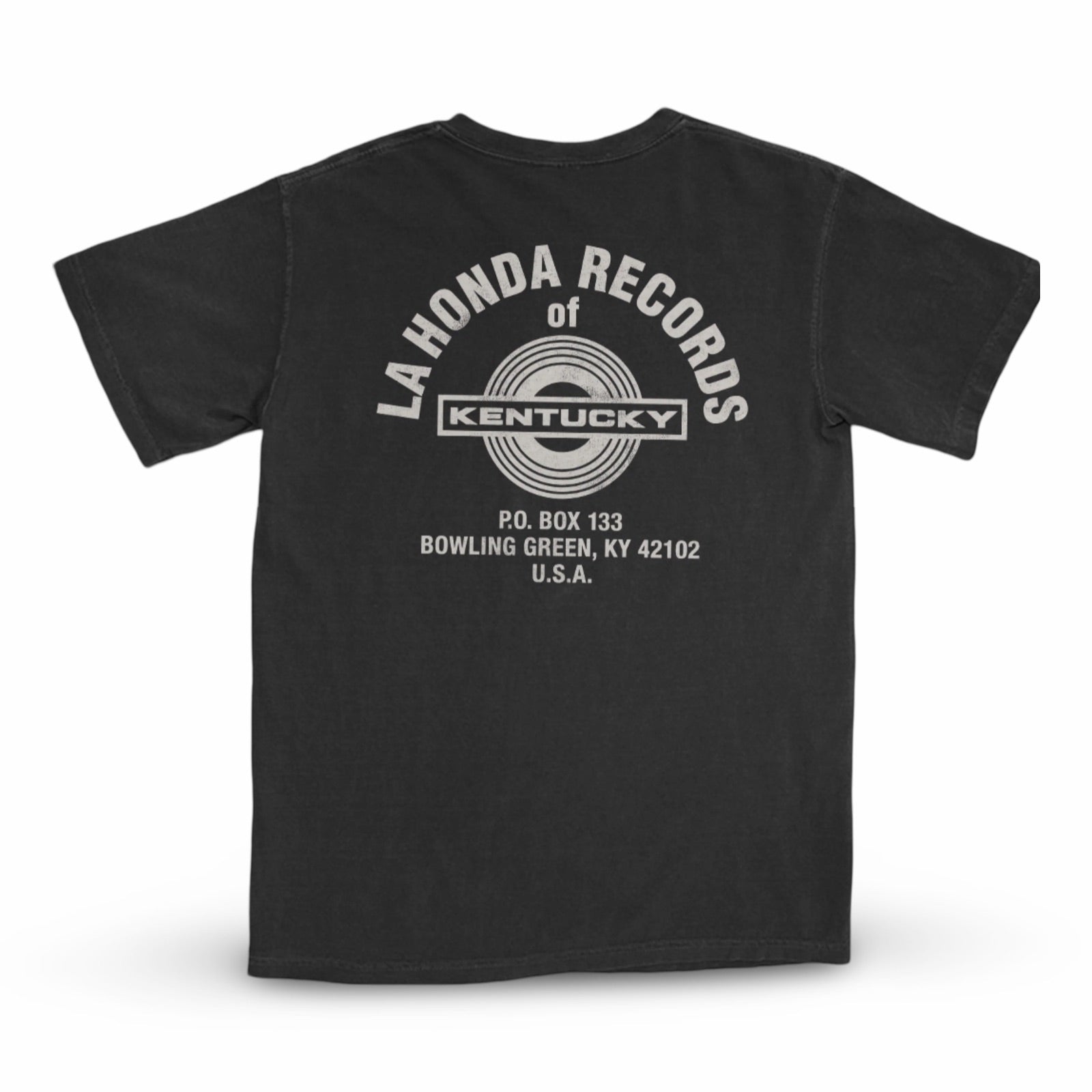 "We don’t care how the hell they do it in Nashville!" on the front and "La Honda Records of Kentucky" on the back. Black 100% cotton.